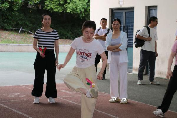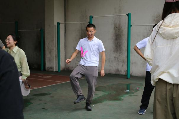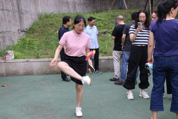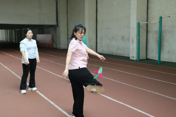 随着比赛开始的哨声响起,小毽子上下跳跃,女教师们体态轻盈,动作行云流水、挥洒自如,男教师们也不甘示弱,纷纷使出看家本领,气势不让巾帼,成为操场上一道道别致的风景。整场比赛在紧张、活泼、又愉悦的氛围中进行,大家互相鼓励、各展风姿,现场气氛分外热烈。