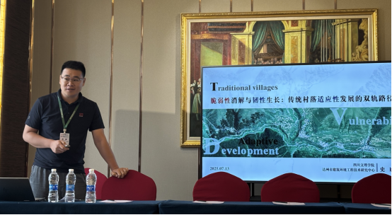 在“城乡韧性理论与规划响应”分论坛,史斌博士以“脆弱性消解与韧性生长:传统村落适应性发展的双轨路径探索”为题进行报告交流,重点阐述了传统村落脆弱性产生根源及驱动机制;围绕“适应性发展”理念,提出了传统村落在不同脆弱状态下的差异化保护发展路径。