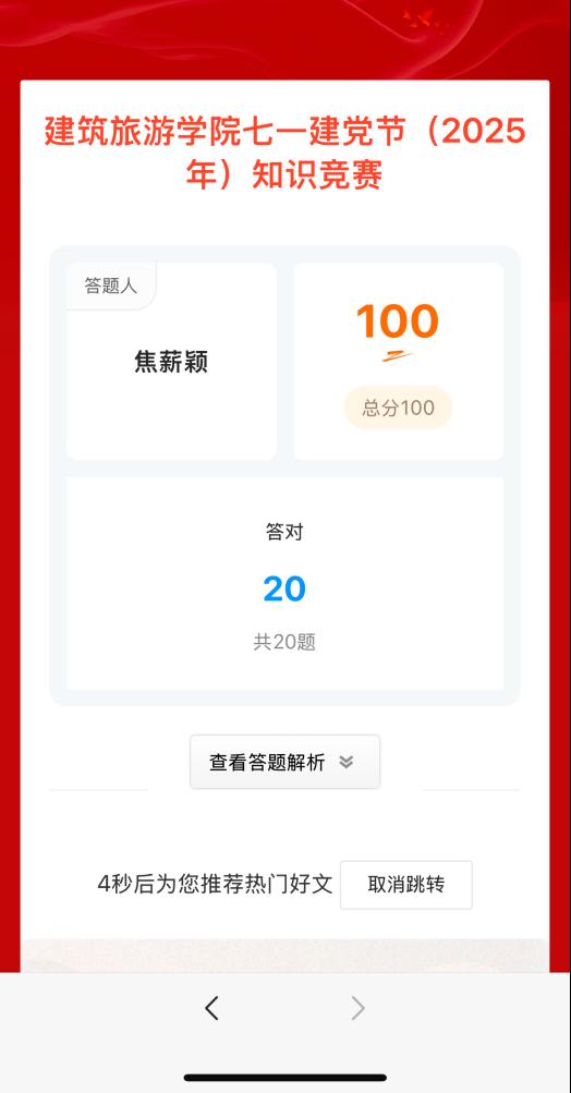 本次知识竞赛采用线上答题形式。活动期间,教职工认真答题,力求将党史深植于心。活动结束后,按照得分高低及所用时间综合评出各等次奖。